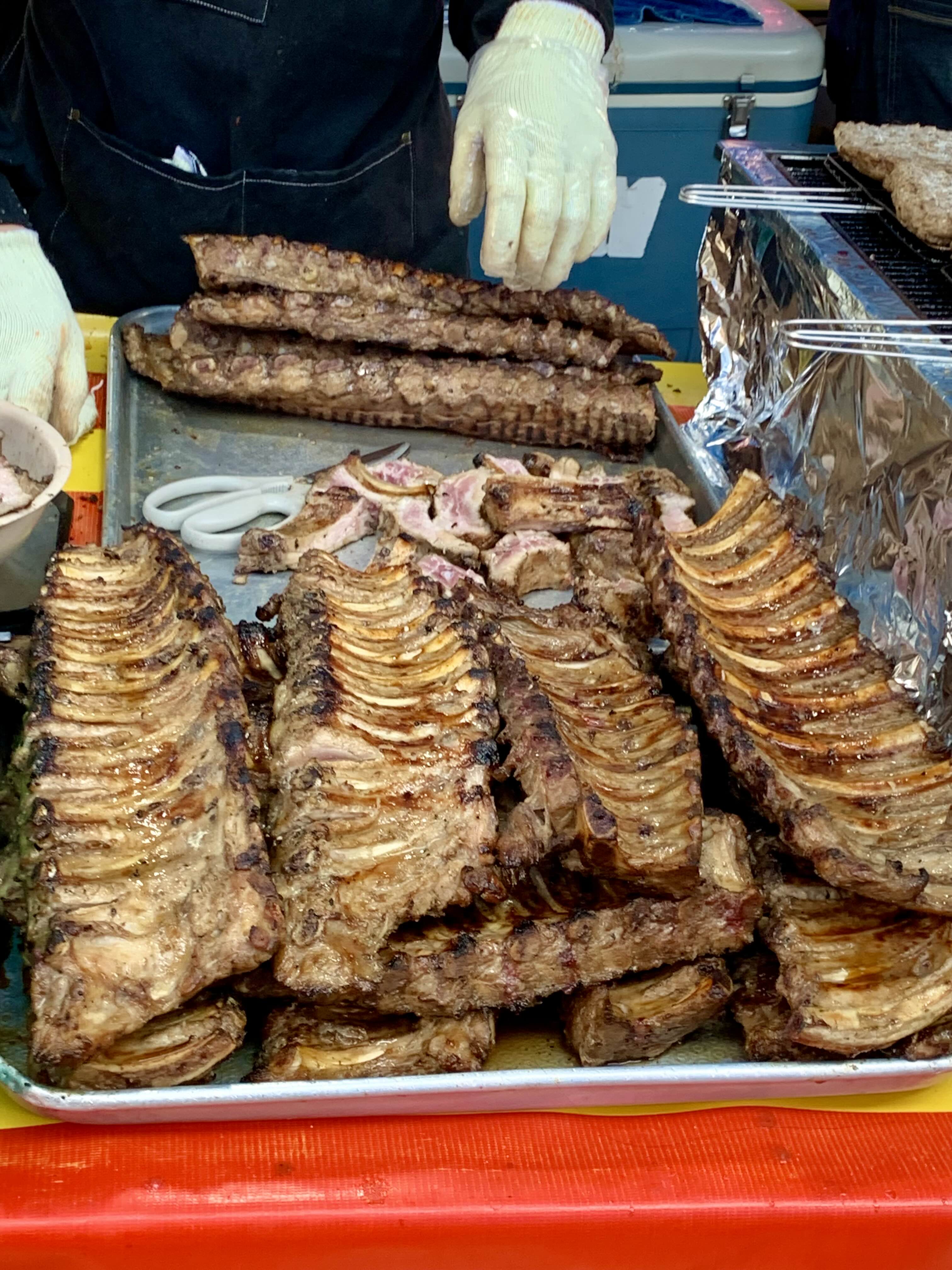 오일장 중간 중간에 좀 더 규모가 큰 등갈비 구이 집이 두 군데 더 있어요.